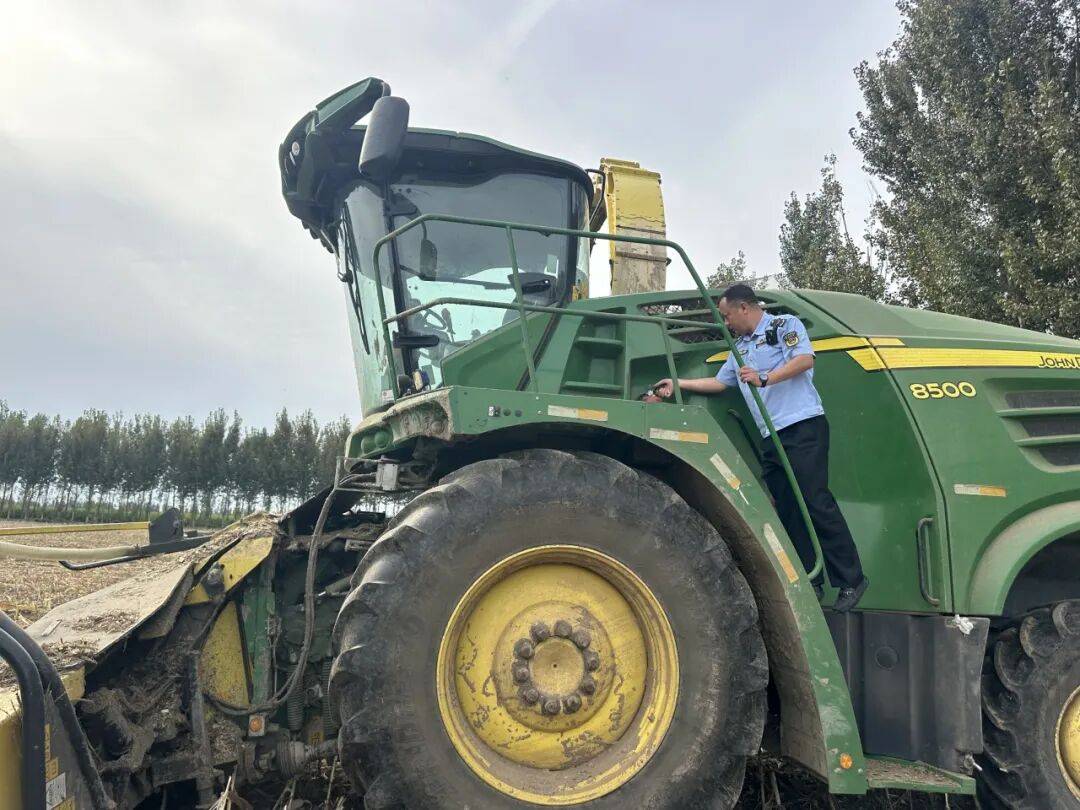 区农业农村局农业分析法律大队干部正在“双节”期间查抄农机功课环境,